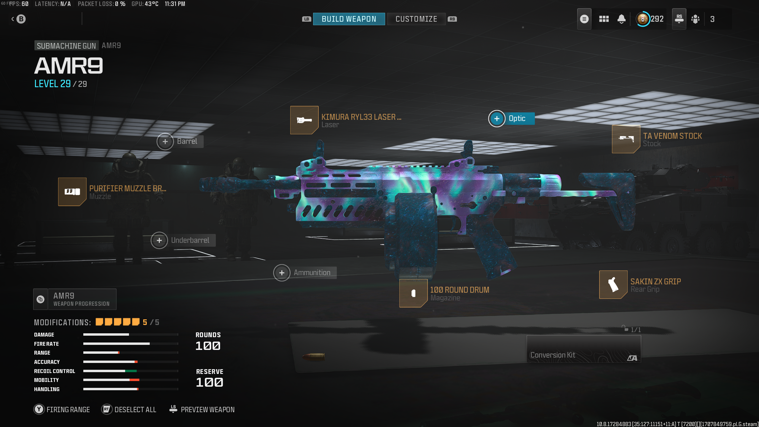 The AMR9 has one main benefit in Zombies, which is a massive magazine. The 100 Round Drum is a huge asset when fighting off hordes of the undead, especially when you Pack-A-Punch the SMG and get access to 200 bullets in each mag. However, you also need to address some accuracy and mobility concerns around the AMR9 to get the most out of its loadout in Zombies.