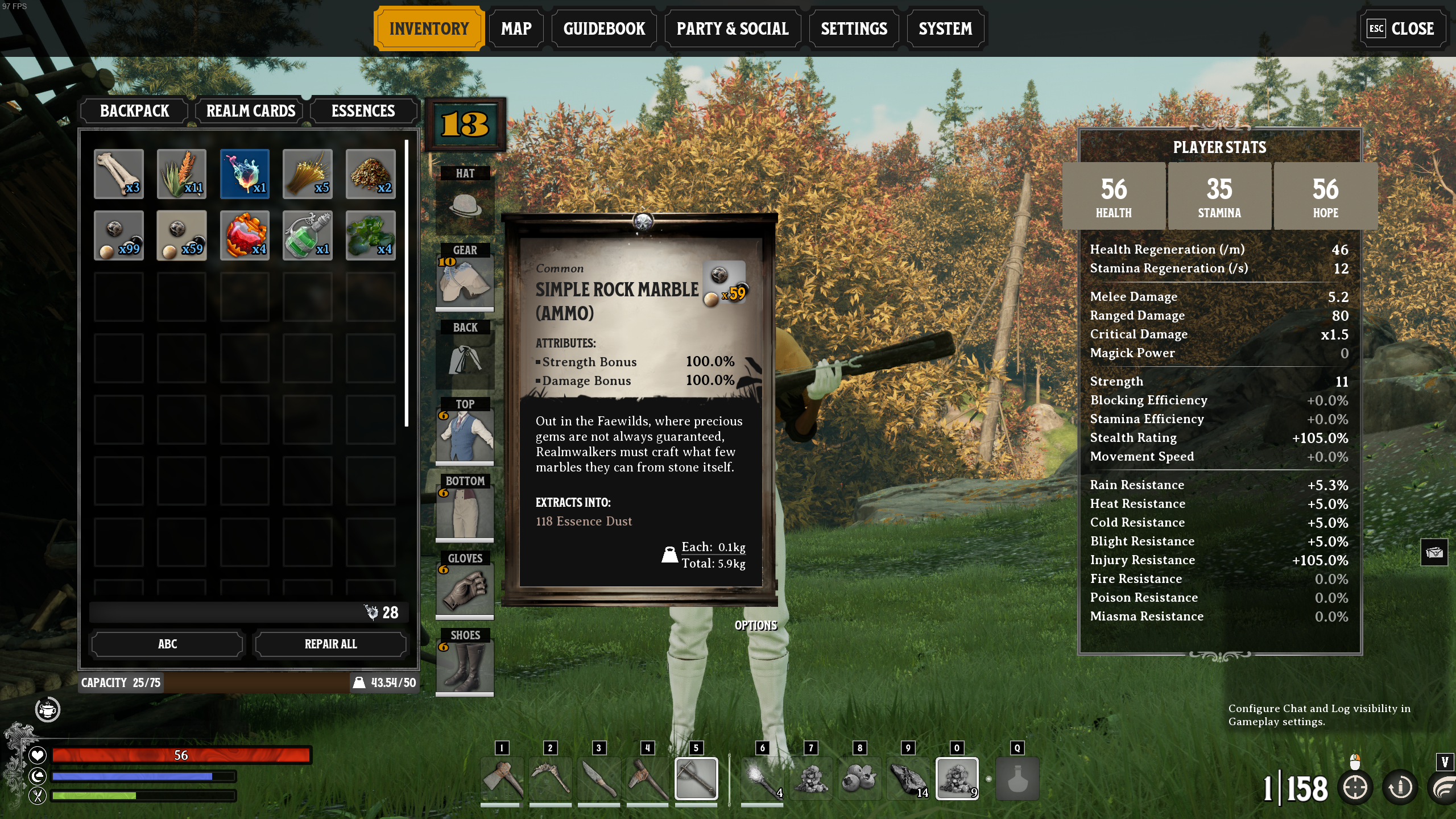 Once your Simple Workbench is built, go to craft an item there and you’ll see the Simple Rock Marble ammo recipe front and center under the “Simple Items” tab. Simple Rock Marble requires six Rocks to craft, which produces 20 of the ammo. Rocks are located all around any Realm in Nightingale, so you should have no issue finding those on the ground.