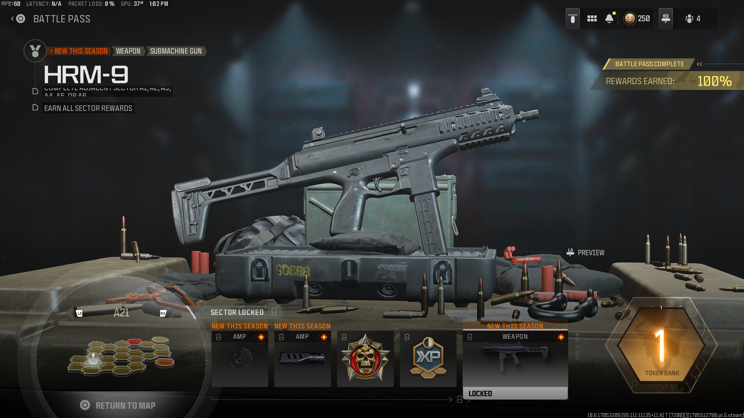 If you go into the Battle Pass, you will see the A21 sector with the HRM-9 on it. By hovering over it, you can see four smaller items in addition to the HRM-9. To unlock the HRM-9, you need to complete the challenges for each of the four items in the sector. The challenges can be viewed by hovering over each of the items and all have to do with SMGs. All of these challenges can be completed in either MW3 multiplayer or Zombies. Once you complete all four of the challenges, the HRM-9 will be unlocked for you to use in MW3, Zombies, or Warzone.
